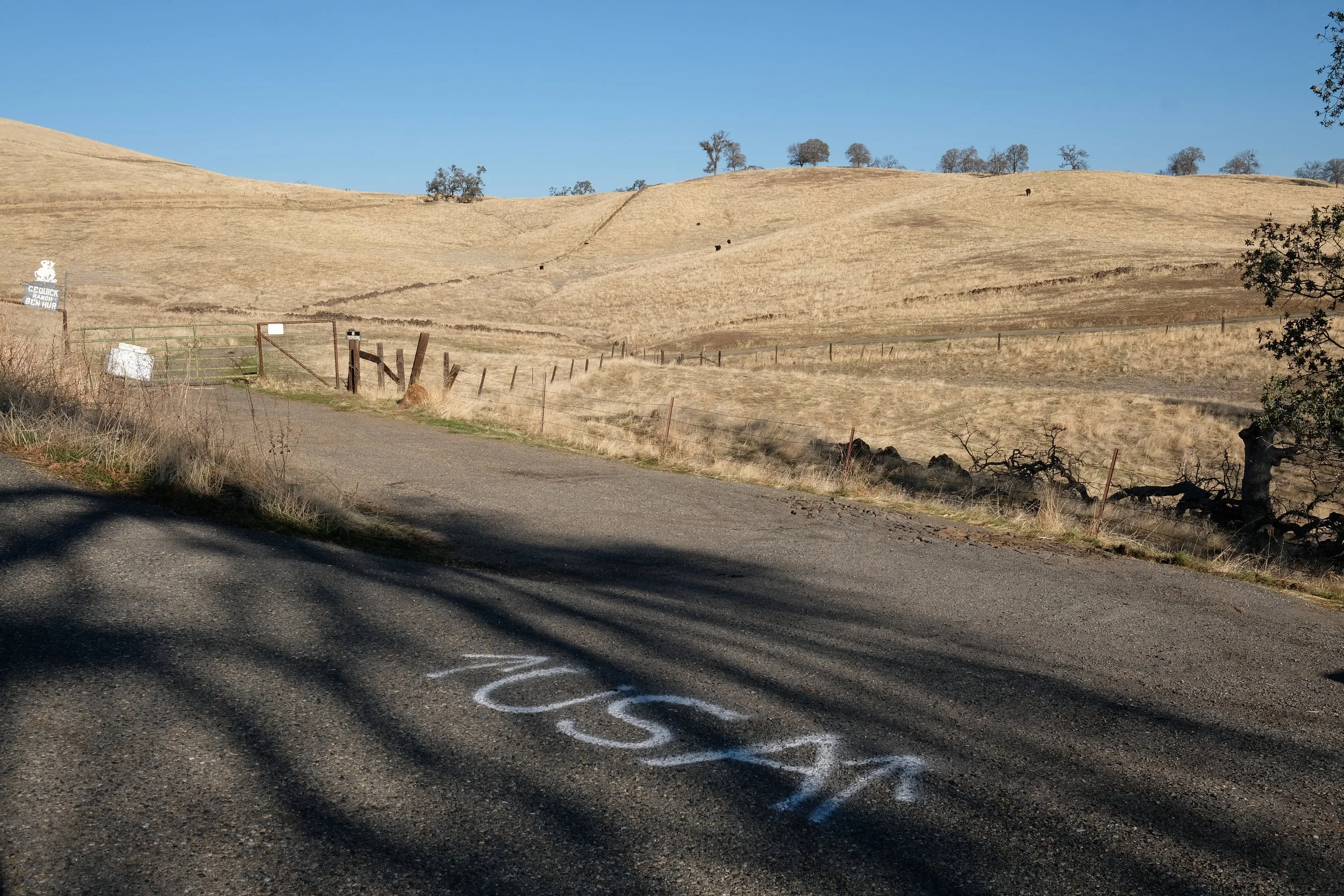 更にその湖の近くには「ベン・ハー」という名前の街を見つけた。まさかと思ってはしゃいで車を走らせその場所へ向かう。山の斜面に沿うように進んでいく。本当の田舎道で、車一台が通るのが限界というところを進んでいく。牛や羊の群れと何度も遭遇しつつ、見える景色の雄大さに感動する。やっとのことその街らしき場所を地図が指し示す地点へと到達したが、そこには何もなかった。何もなかったわけではなかったが、その場所は誰かの牧場があり、そしてその入り口の道路には「USA」とだけ白いチョークで書かれていた。唐突であっけないこのUSAというサインにアメリカらしさの全てが詰まっているような気がして感動したことを覚えている。ヨセミテの麓にあるこのベン・ハーという架空の街(そこには本当にかつてベン・ハーという街があったことは調べてから知った)、そしてそのロードサインのUSAという文字は、なぜかルート66のサインよりも自分の中でしっくり来た。この街がなぜベン・ハーというのか、それは言わずもがな同名の小説から取られているからだった。しかしなぜベン・ハーという名前を取ったのかは全くわからなかった。それでも、不思議なことにこの場所から物語というものを感じずにはいられなかった。どんな小さな街にも愛らしいストーリーがある。